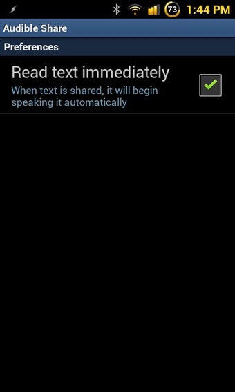 Audible Share adalah aplikasi Android yang dirancang untuk mengaktifkan fitur Text-To-Speech (TTS) pada aplikasi lain. Dengan menggunakan perintah Share yang umum, pengguna dapat mengirimkan teks ke Audible Share untuk diucapkan secara langsung. Aplikasi ini sangat berguna untuk membaca email saat pengguna tidak dapat melihat layar, seperti saat berkendara. Selain itu, Audible Share kompatibel dengan K-9 Mail dan SVox Classic, yang menawarkan suara berkualitas dalam berbagai bahasa.